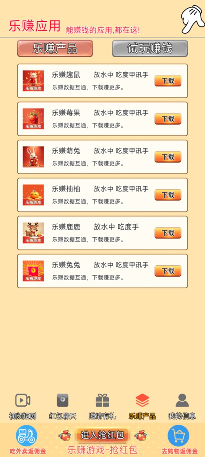 乐赚游戏 日期:2025-02-08 16:25:45 分类:广告零撸 大小:53.26MB 人气:26 乐赚游戏全新升级,现在不仅可以看广告零撸,还增加了点外卖返佣金,购物返佣金多个板块,在乐赚产品页面可以下载其它子APP,乐赚游戏子APP有乐赚趣鼠、乐赚莓果、乐赚萌兔、乐... 安卓下载 乐赚游戏全新升级,现在不仅可以看广告零撸,还增加了点外卖返佣金,购物返佣金多个板块,在乐赚产品页面可以下载其它子APP,乐赚游戏子APP有乐赚趣鼠、乐赚莓果、乐赚萌兔、乐赚柚柚、乐赚鹿鹿、乐赚兔兔! 标签: 广告零撸 上一个 小金牛短剧 下一个 柚趣 相关推荐 聚宝客 乐省多多 蛋蛋星球 易淘生活 派拉夺宝 洋洋Pro 喵享 星空赚动